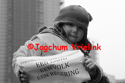 Jogchum Vrielink (o1976) is redactielid van Samenleving en politiek en onderzoeker aan de K.U.Leuven. In zijn vrije tijd is hij ook (freelance) fotograaf. Zijn foto’s en reportages waren onder andere te zien in diverse tijdschriften van Roularta en op de website van het weekblad Knack. Op 23 januari jongstleden was Jogchum Vrielink met zijn camera in Brussel om de SHAME-betoging vast te leggen. Circa 35.000 mensen uitten tijdens die demonstratie hun ongenoegen over het uitblijven van een federale regering. In deze portfolio vindt u een greep uit de bewuste fotoreportage; het zijn veelal foto’s van slogans en teksten die de demonstranten meedroegen op spandoeken en borden.