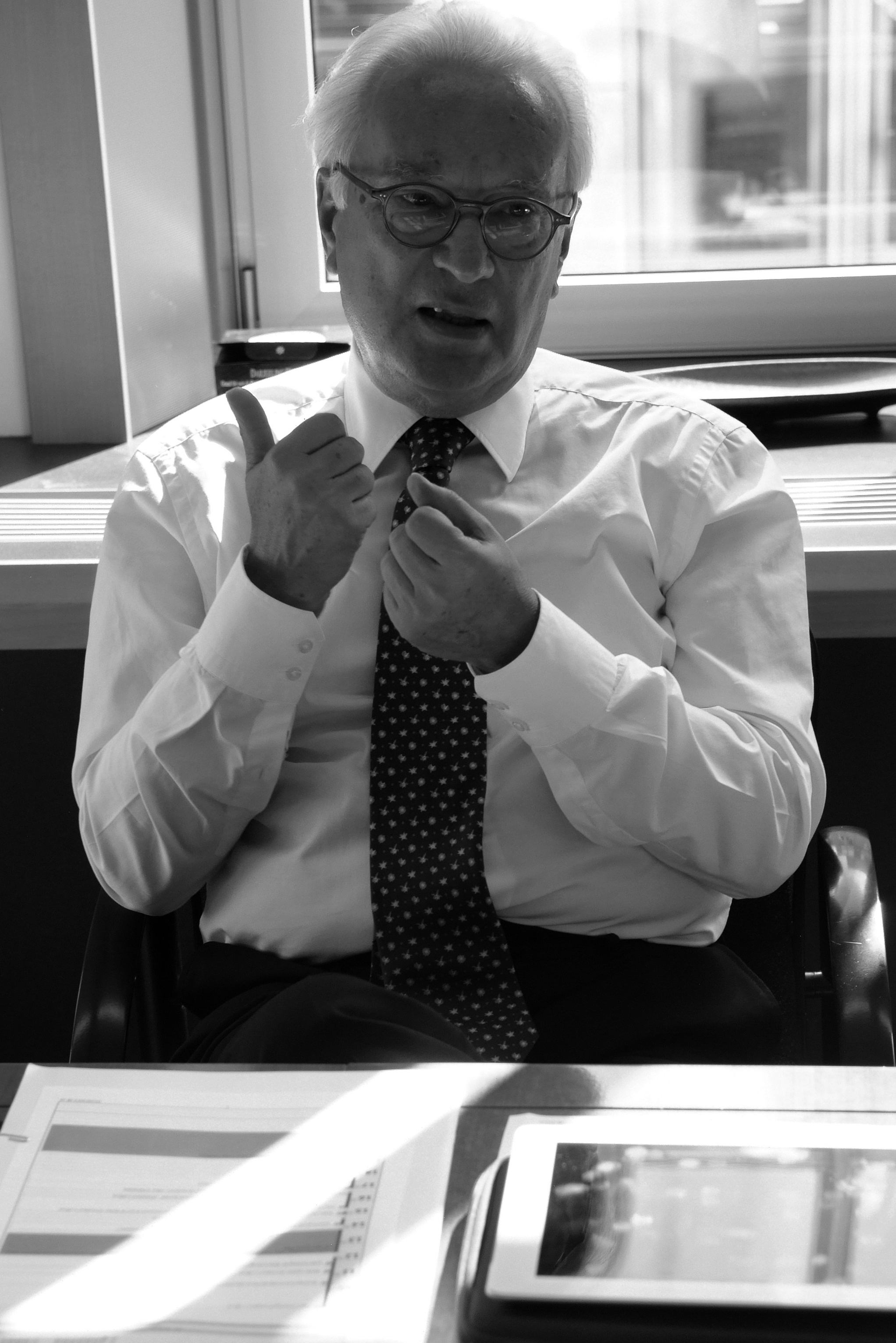 "Om het presidentschap van François Hollande te evalueren, moeten we verschillende elementen in rekenschap brengen. Een. De media verwachten een Duits-Franse samenwerking, maar dat is verre van eenvoudig. Duitsland staat er economisch beter voor en wordt geleid door iemand met een heel andere visie. Natuurlijk wil ook ik dat Frankrijk en Duitsland nauw samenwerken, maar met de inzichten van Hollande, niet met die van Merkel. Twee. In het moderniseren van de economie en het reduceren van de bureaucratie, zit Hollande in een moeilijke positie. Hij moet in tijden van economische crisis, in samenspraak met de sociale partners, de hervormingen doorvoeren waar Sarkozy en eerder Chirac altijd over spraken, maar nooit iets aan deden. Ik zeg niet dat Hollande het goed doet, maar probeer het moeilijke parket waarin hij zich bevindt te verklaren. Ik hoop nog altijd dat Frankrijk de noodzakelijke hervormingen zal doorvoeren. Dat zal gemakkelijker zijn als de economie weer wat opleeft. Frankrijk heeft een van de hoogste belastingstarieven, bijna even hoog als sommige noordelijke landen, maar het uitgavenpatroon en de hoge bureaucratisering vormen een belemmering. En het is natuurlijk gemakkelijker om de belastingen te verlagen dan de productiviteit van de publieke sector te verbeteren. Frankrijk heeft zonder de minste twijfel hervormingen nodig. Hollande wacht dus nog een reusachtige taak."