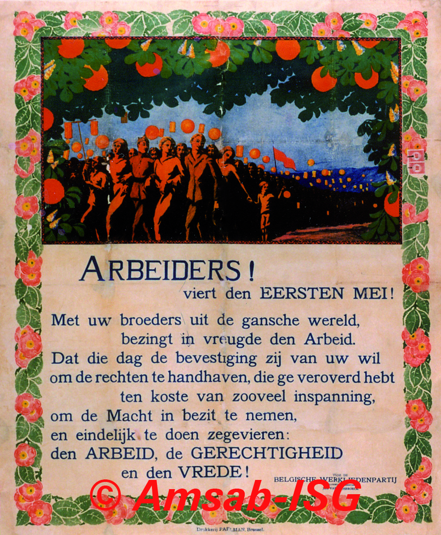 Op 1 mei viert de socialistische beweging ‘125 jaar Dag van de Arbeid’. Het is een ideale gelegenheid om te snuisteren in het indrukwekkende archief van het Amsab-Instituut voor Sociale Geschiedenis (www.amsab.be). Dit erfgoedcentrum voor sociaal, humanitair en ecologisch geëngageerde bewegingen verzamelt verhalen van gewone mensen: over hun verzet tegen onrecht en discriminatie, over hun strijd voor rechten en gelijkwaardigheid. In dit portfolio vindt u voornamelijk 1 mei-affiches uit de jaren 1920 en 1930. U leest er over ‘onrealistische’, ‘naïeve’ eisen, zoals een 40-urenweek of betaald verlof, vandaag echter allen werkelijkheid geworden. De affiches lezen als een herinnering, een aansporing bijna, om ook vandaag nog te durven dromen van een betere wereld.