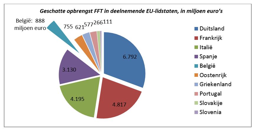 Berekening op basis van impact beoordeling (2013) en inkomstenschatting (2016) door Europese Commissie gebaseerd op initieel FTT-voorstel en transactiedata van 2013 en 2014.