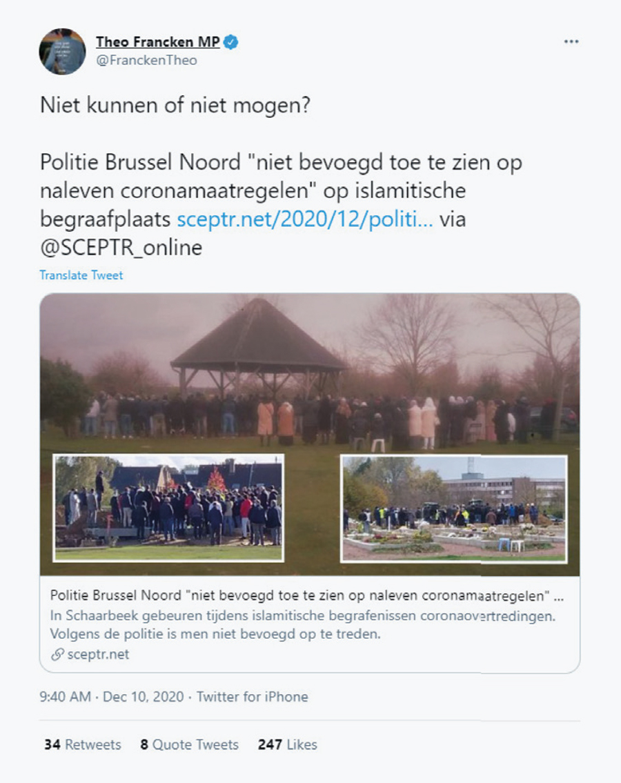 En Twitter dan? Wie op zoek gaat naar Twitter voor een degelijk debat, komt bedrogen uit. Donald Trump leerde ons dat een stevige quote veel meer betekent dan een inhoudelijk argument: de media-aandacht is drie keer zo hoog. Wanneer je tegenstanders het er niet mee eens zijn, delen ze het nog eens extra uit verontwaardiging, vergetende dat er onder hun volgers ook mensen zijn die het er mogelijk wél mee eens zijn. Waardoor het item voor de pers interessant wordt. Daardoor komen thema's op de kalender, ook al zouden sommige partijen het graag over andere zaken hebben. In Vlaanderen beheerst N-VA, en met name Theo Francken, deze strategie feilloos: er zijn enerzijds 'hun' thema's, en anderzijds thema's waar 'niet over gesproken mag worden' (ZIE HIERONDER). Voor een platform als Twitter, nog steeds het platform waar nieuws het snelst gedeeld wordt, is dit essentieel. Het maakt niet uit wat de Twitteraar denkt: het maakt uit wat er in de klassieke media komt, want zo bereikt het een groter publiek.