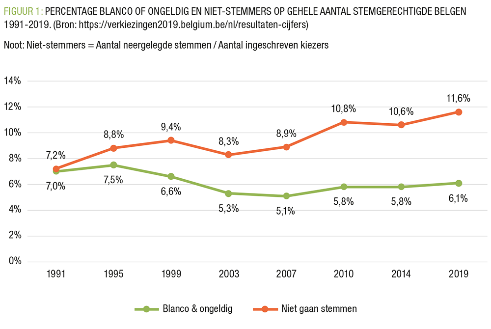 De opkomstplicht in België lijkt steeds minder effectief, met ongeveer 15% van het electoraat dat niet, ongeldig of blanco stemt. Hierdoor vormt de groep niet-kiezers de derde grootste 'partij' in Vlaanderen, na Vlaams Belang en N-VA. Deze ontwikkeling zorgt ervoor dat de verkiezingsresultaten steeds meer zullen afhangen van het al dan niet participeren van het electoraat, wat de legitimiteit en representativiteit van de politiek ernstig kan ondermijnen en tot ondervertegenwoordiging van specifieke sociale groepen in de samenleving kan leiden.