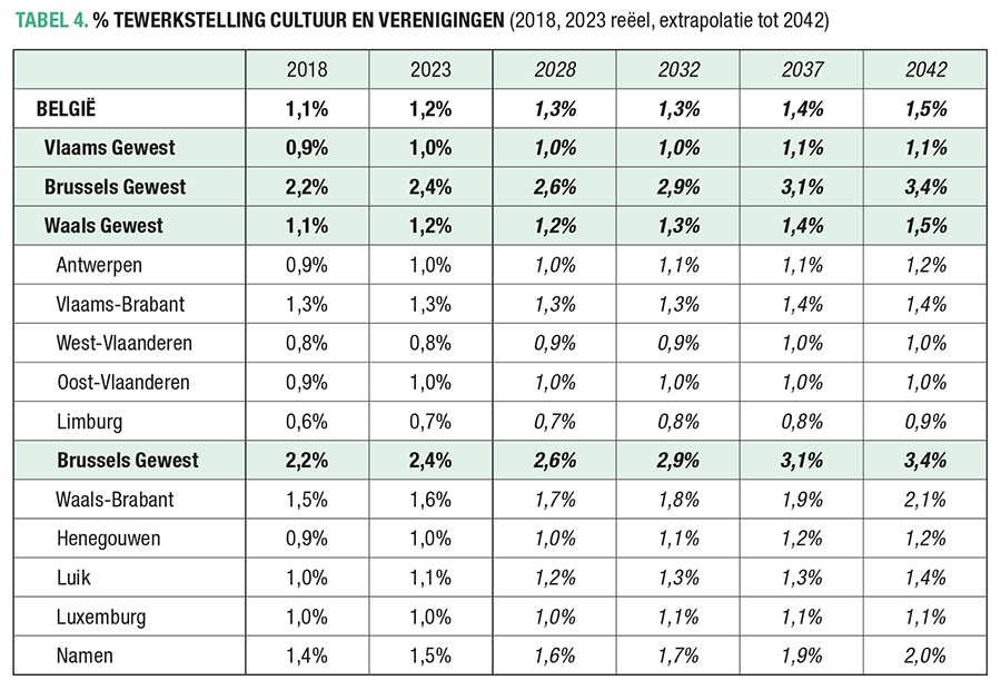 Eén indicator is het aantal werknemers (en de relatief beperkte groei ervan) dat tewerkgesteld is in de sectoren van culturele activiteit en het verenigingsleven (TABEL 4), en de correlatie met partijkeuzes.