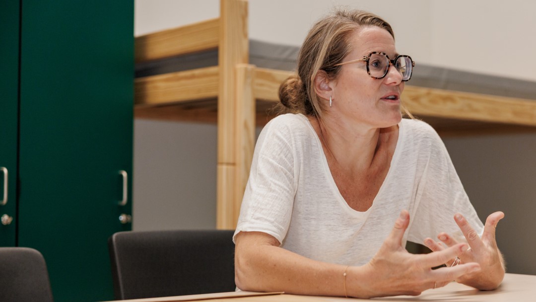 Anneleen Van Bossuyt in het nieuwe gesloten asielcentrum in Merksplas, © ID/Rhode Van Elsen