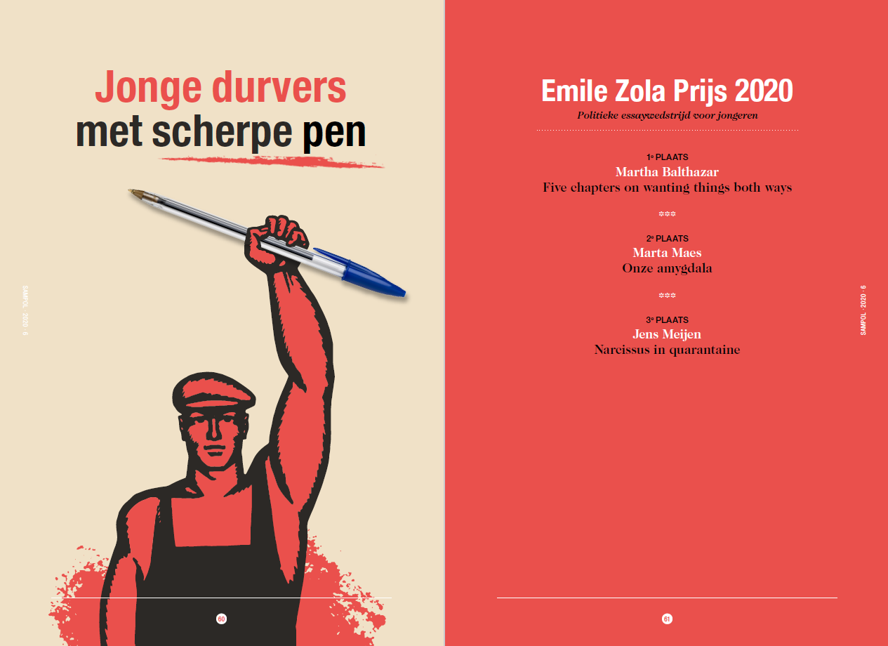 Samenleving & Politiek, Jaargang 27, 2020, nr. 6 (juni) Five chapters on wanting both ways Martha Balthazar juni 2020 Onze amygdala Marta Maes juni 2020 Narcissus in quarantaine Jens Meijen juni 2020